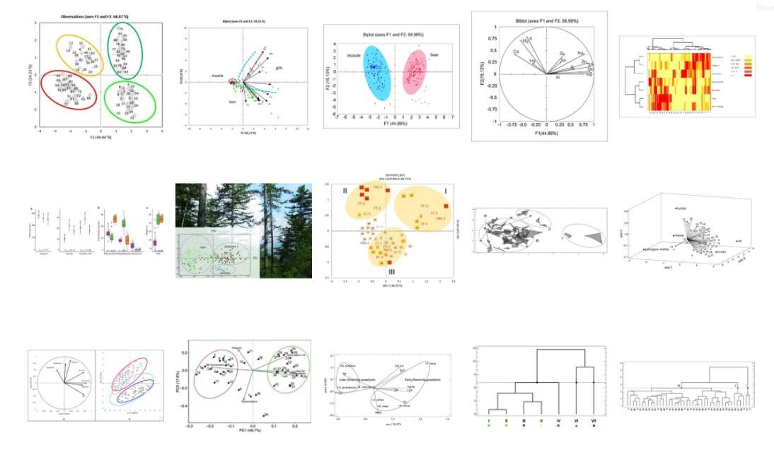 - analysis of data; choice of appropriate statistical tests from a range of over 40 tests: t-tests, Smith/Welch/Satterthwaite test, F-test, Bartlett’s test, Levene’s test, one-way, two-way and three-way analysis of variance (ANOVA I, II, III), nested ANOVA, multivariate analysis of variance (MANOVA), repeated measures ANOVA, correlations, simple linear regression, multiple linear regression, Mann-Whitney W-test, Wilcoxon rank sum test, McNemar’s test, Kolmogorov-Smirnov test, sign test, Kruskal-Wallis test, Friedman test, Cochran’s Q test, two-way non-parametric ANOVA, Spearman’s rank correlation, chi-square tests, principal component analysis (PCA), discriminant analysis (DA), cluster analysis, factor analysis (FA), correspondence analysis (CA), general linear model (GLM), etc. Results and inferences are precise only if the appropriate statistical test is used.
